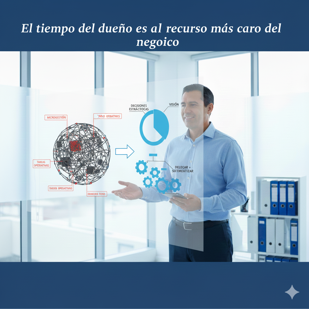 Si el dueño está en todo, el negocio no escala. La productividad estratégica consiste en que el empresario haga solo lo que nadie más puede hacer.